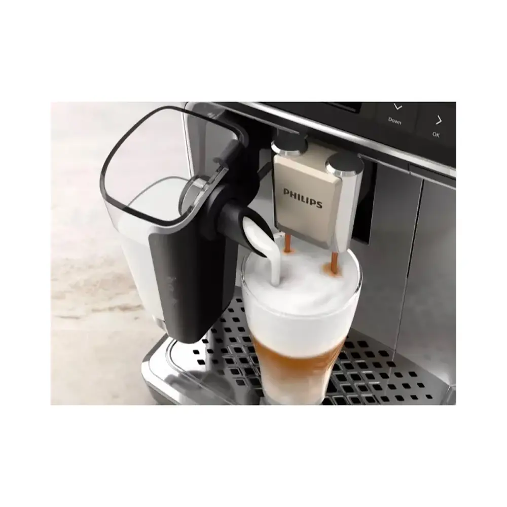 یکی دیگر از ویژگیهای منحصربهفرد این دستگاه، سیستم LatteGo است که به شما امکان میدهد کف شیر نرم و غنی برای نوشیدنیهای مختلف قهوه مانند لاته و کاپوچینو تهیه کنید. این سیستم علاوه بر کیفیت عالی، بسیار راحت برای تمیز کردن است و تمام قطعات آن به راحتی قابل جدا شدن و شستشو هستند.