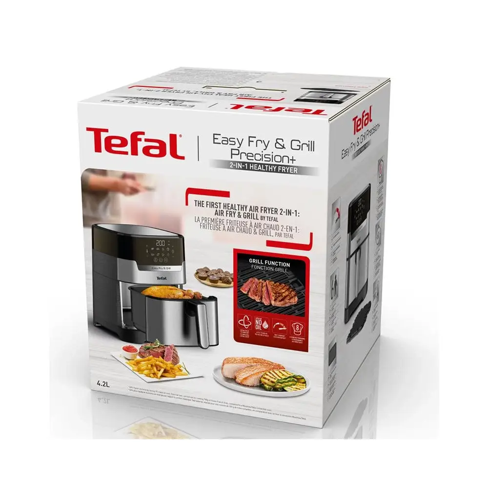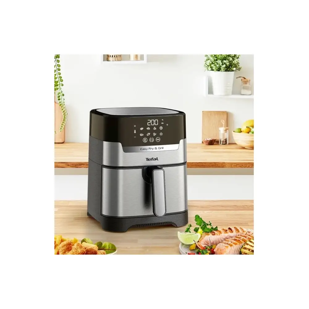 سرخ کن تفال EY505 دارای ۸ برنامه پیشفرض پخت است که به شما امکان میدهد انواع غذاها را بهراحتی تهیه کنید. این برنامهها شامل گزینههایی برای پخت سیبزمینی سرخکرده، مرغ، ماهی، سبزیجات و دسر هستند.