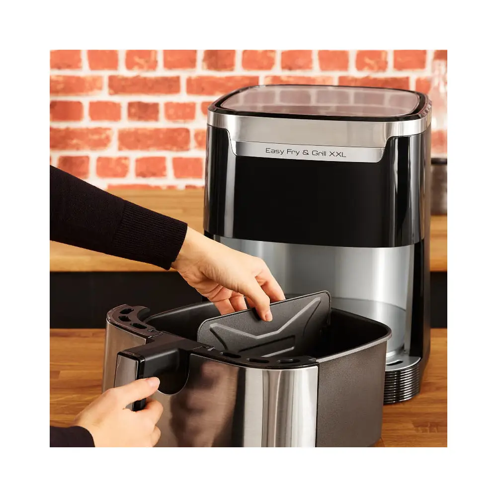 سرخ کن تفال EY801D با ظرفیت ۶.۵ لیتر یکی از جادارترین مدلهای موجود در بازار است. این ظرفیت بالا امکان آمادهسازی غذا برای تا ۸ نفر را فراهم میکند. اگر قصد دارید وعدههای غذایی بزرگی تهیه کنید، این دستگاه فضای کافی برای پخت همزمان غذاهای خانواده یا مهمانها را در اختیارتان قرار میدهد.